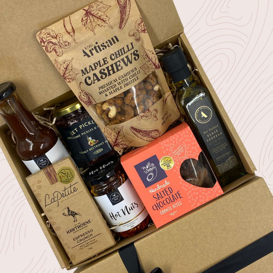 The Foodie Gift Box – a flavour-packed selection for those who love bold tastes and quality ingredients. From rich espresso chocolate to gourmet truffle oil, every item is carefully chosen to impress. Packed in our sustainable kraft gift box and finished with an accompanying note card for you to add a personal message.
